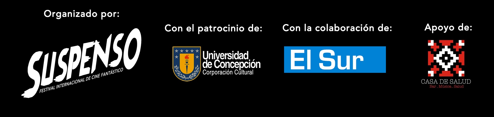 Este 24 y 25 de Octubre damos inicio a la segunda version de SUSPENSO. El año pasado fue SUSPENSE. Este año nos enfocamos en ser un Festival de Cine Fantástico en la Region de BioBio y Ñuble el proximo año.